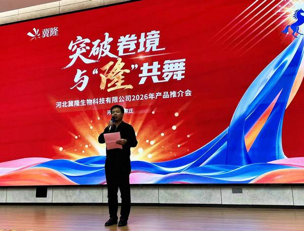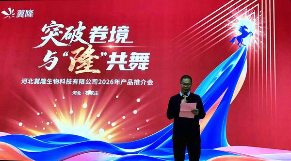 本网讯 为聚合植保行业优质资源,赋能渠道伙伴共拓新局,12月8-9日,河北冀隆生物科技有限公司召开“2026年产品推介会”。河北省农资集团总经理杨瑞生、副总经理赵利强出席活动,河北冀隆生物科技有限公司副董事长于丰廷、总经理杜义敏、十六家农药领军企业代表、农业专家及冀隆核心经销商齐聚一堂,共襄盛举。大会以“突破卷境,与隆共舞”为主题,旨在深化战略协同,共研市场趋势,集中推介一系列前沿植保产品与解决方案,为更好服务农业生产,助力粮食增产丰收注入强劲动能。