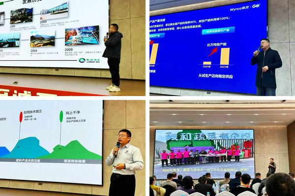 推介环节中,四川利尔作物、新安化工、胜邦绿野、四川龙蟒福生、清原农冠、吉林八达农药、广州慕恩生物及富美实等国内外知名农化企业代表相继发言,分别就与冀隆公司的战略合作前景进行了展望,并隆重推介各自核心产品优势与方案。随后,大会进行了年度合作政策宣导,明确了新一年的市场支持体系与共赢机制。