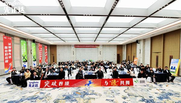 本网讯 12月8日,河北省农资集团旗下河北冀隆生物科技有限公司携手先正达集团举办“突破卷境、与‘隆’共舞——京津晋冀2026年‘棒歌’上市会暨‘美炎’启动会”。大会深度解读公司战略、展示创新产品、规划市场布局,共同开启农业植保解决方案的新篇章。来自河北、天津等地的核心经销商和行业伙伴齐聚一堂,共同见证先正达核心产品—“棒歌”的全新亮相,共商2026年农资市场发展新策略。