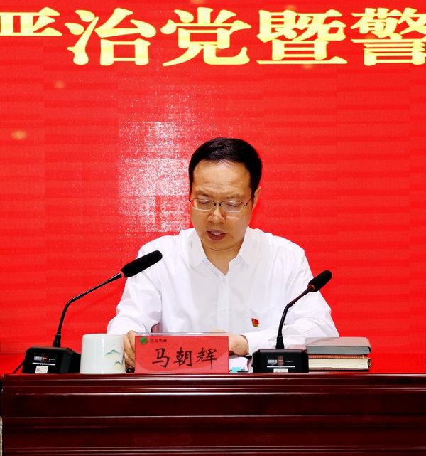 马朝辉同志在会上讲话。他指出,党的十八大以来,以习近平同志为核心的党中央把全面从严治党纳入“四个全面”战略布局,坚持无禁区、全覆盖、零容忍,坚决查处政治问题与经济问题交织的腐败,坚决防止领导干部成为利益集团公司和权势团体代言人,坚决清理行业性、系统性腐败。此次开展警示教育,目的在于以案促改、以案促治、以案促建。全体党员干部要通过警示教育专题片揭露的案例深刻反思、警钟长鸣,时刻绷紧纪律规矩这根弦,坚决守住廉洁自律底线,不越党纪国法红线。